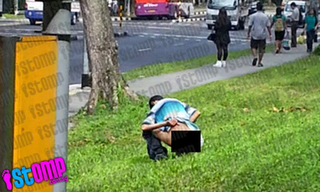 Man takes a dump on grass patch at Jurong West