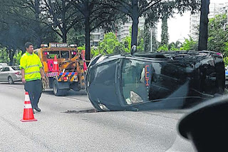 He contributed photos of what he saw and told Stomp: "After hearing the 'bang', I looked around and saw a car overturning.