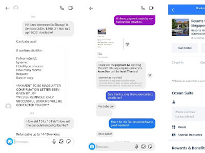 The victims came across the man’s advertisement for the room bookings on e-marketplace Carousell and proceeded to reach out to him via WhatsApp. They made payments through bank transfers and the PayNow digital application but did not get what they bought.