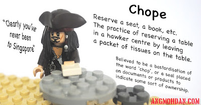 The Singlish phrase ‘chope’ needs a dedicated post. Although everyone goes on about tissue paper packets in food courts and coffee shops, the word ‘chope’ has an interesting history.